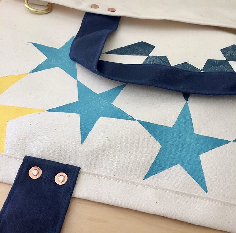 Two Bay Area Made members, bag maker MoMurray and quilt maker Construction Lines, will be offering a series of collaborative bags with Construction Lines’ signature geometric block printing.