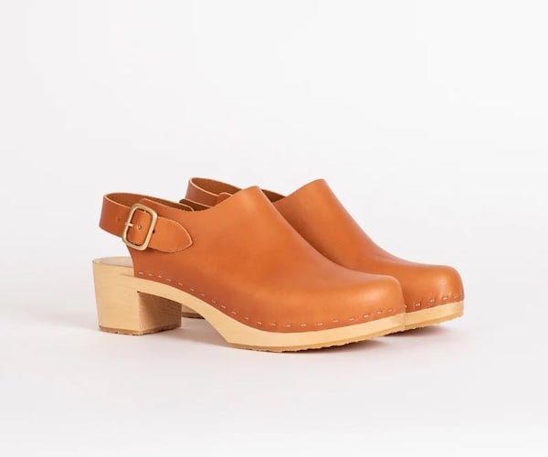 Left: Part of the in-stock Ready to Roll Collection from Bryr Studio, the Worker Clog in Whiskey Leather is Bryr’s fresh take on the traditional Scandinavian clog. The classic clog has been updated with clean lines, a modern shape, and an elegant silhouette. True to its workhorse roots, it’s a clog that you can wear all day, every day.