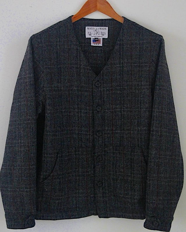 Right: Grey Plaid Harris Tweed Long Sleeve Tunic from Kali Made Garments is based on a timeless silhouette, with a few modern tweaks for 21st century wearability. Unstructured and unlined, it features the best of a classic cardigan and heavy overshirt combined into one piece. While it looks great over a collared shirt and/or under a sport, you can also wear it over a hoodie to add a little class to your street-ready everyday look.