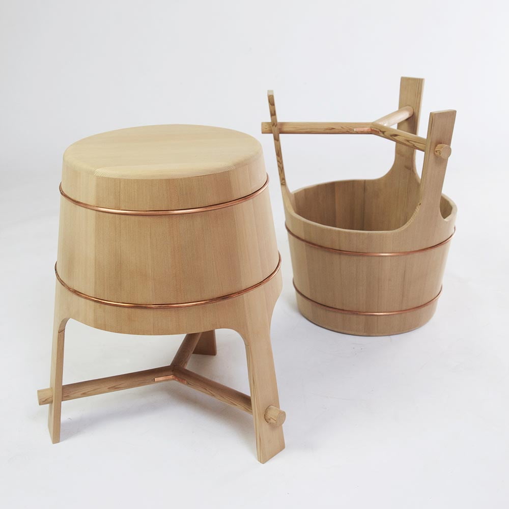 Above: Bucket Stool and Barrel Stools.